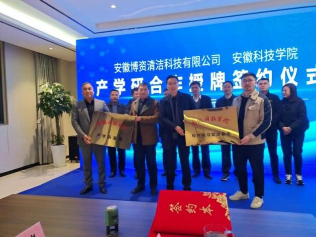 会上,李子荣代表学校与企业签订了共建“安徽博资纤维素多孔材料工程技术中心”协议、产学研合作协议、QY球友会实习实训基地协议、技术开发(委托)合同。王强、朱发贵、赵永滨和王汉民共同为共建工程技术中心揭牌;黄树桥和李子荣为QY球友会产学研基地和校外实习实训基地授牌。
