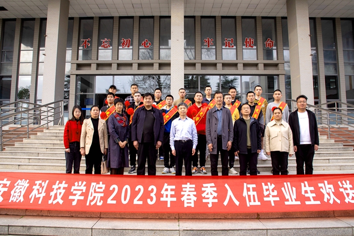 3月10日下午,我校2023年春季应征入伍毕业生欢送仪式在凤阳校区会议中心第二会议室举行。校党委书记蒋德勤出席仪式并讲话。校党委学工部、武装部相关负责人和相关学院毕业班辅导员参加欢送仪式。仪式由党委学工部部长、学生处处长黄立义主持。