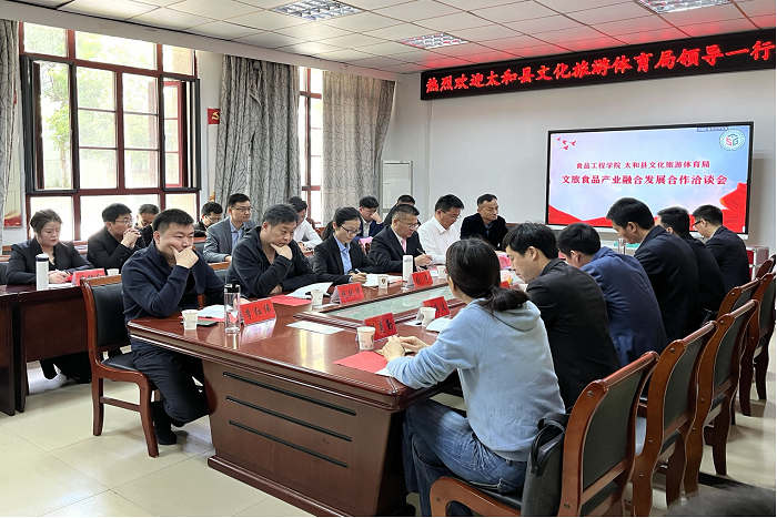太和县文化旅游体育局党组成员张宁,产业股负责人祝军和相关企业负责人等随同到访。科研处、食品工程学院、农学院相关负责同志和学科团队负责人及成员参加活动。(特约通讯员:程韬 摄影:程韬 审核:付光玺 姚文均 编辑:张威)