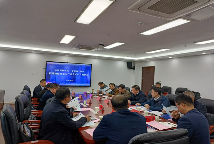 黄远友在致辞中对宁海县重点产业引才工作组表示欢迎,并简要介绍了学校办学历史、办学成就和办学愿景。他指出,近年来,宁波市、蚌埠市和我校校地、校企沟通联系不断加强,交流合作持续深化,宁波和蚌埠结对合作帮扶的“十年之约”强力开局。学校通过举办甬蚌合作专场招聘集市,同宁海县签署校地合作战略框架协议,持续深化人才培养、产学研合作、课题攻关、科研创新等方面合作,协同推进人才培养质量提升,双方合作成果丰硕。他强调,希望毕业生能够充分利用宁海引育人才的优渥政策,将职业理想落地生根。