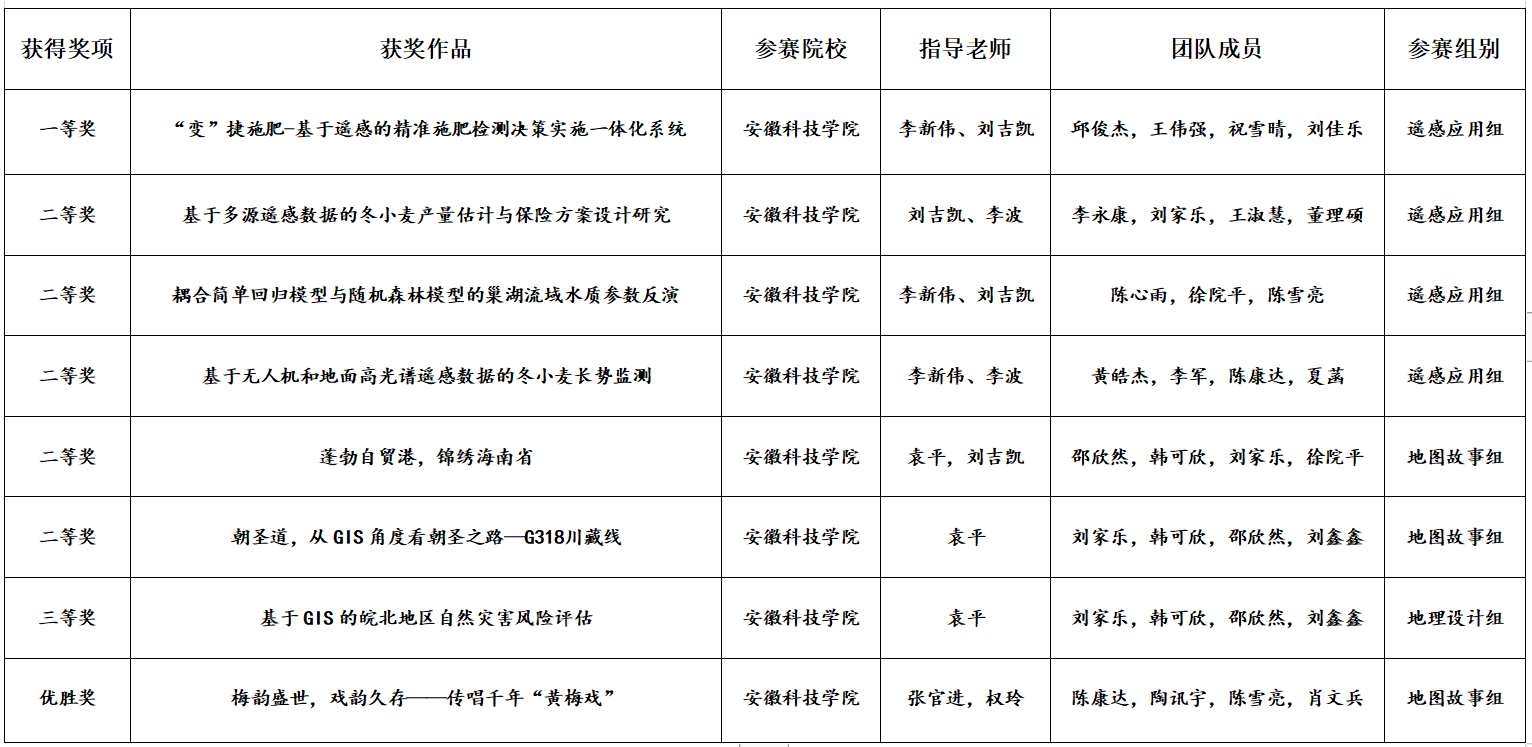 本次GIS开发竞赛分为(A组)地图故事组、(B组)地理设计组、(C组)GIS应用开发组和(D组)遥感应用组,共有来自全国各地超200所高校参与,共计报名3265组。大赛以线上的方式举行,评委线下评审的方式进行。比赛中,我校资源与环境学院学子充分发挥自己的实力,最终获得(A组)地图故事组二等奖两项、优胜奖一项,(B组)地理设计组三等奖一项,(D组)遥感应用组一等奖一项,二等奖三项。