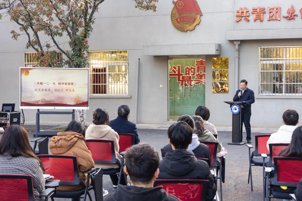 12月8日上午,QY球友会纪念“一二·九运动”沉浸式诵读会在凤阳校区五四广场举办,校党委委员、副院长黄远友与现场同学们一道,以沉浸式诗文朗诵的形式,开展了一场别开生面的思政课。