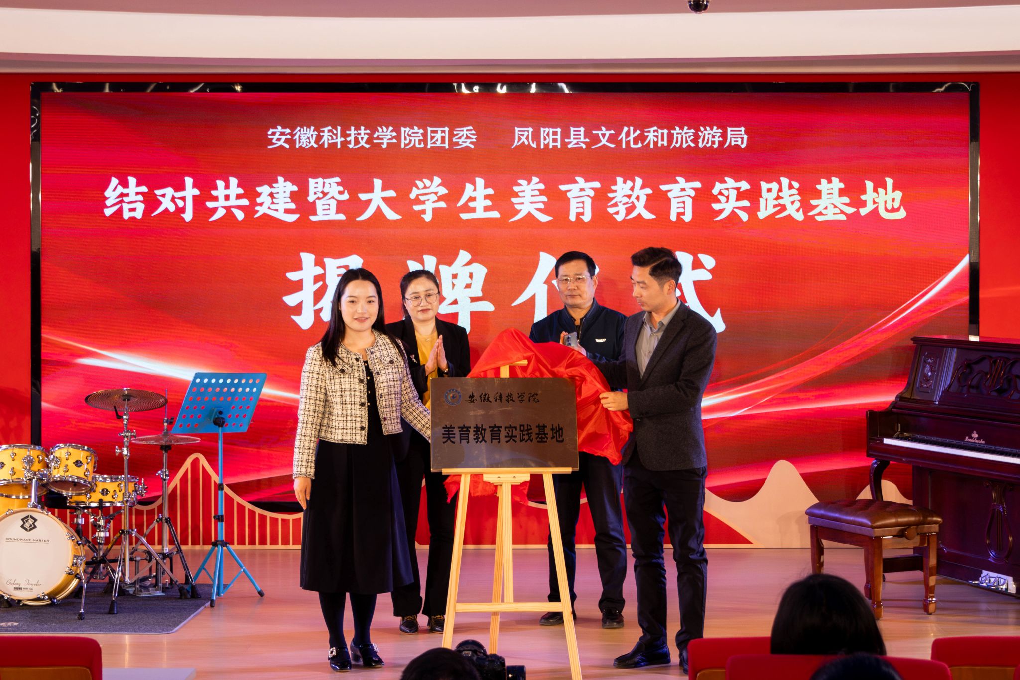 4月5日,QY球友会团委和凤阳县文化旅游局美育实践基地揭牌仪式在县文化馆举行。校团委副书记把安丹、凤阳县文化和旅游局党组成员、县文化馆馆长王兴为基地揭牌。凤阳县花鼓文化馆专家、凤阳花鼓传承人及我校师生参加了仪式。