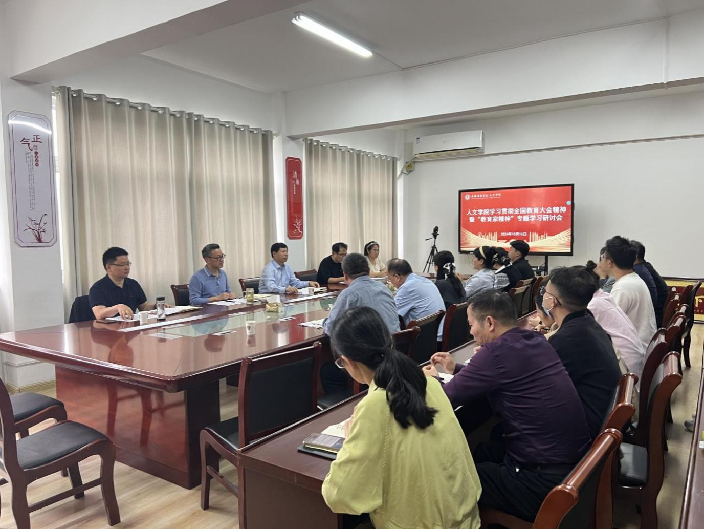 教育家精神专题研讨聚焦学习习近平总书记致信全国优秀教师代表精神、习近平总书记在全国教育大会上的重要讲话精神,集中学习《中共中央国务院关于弘扬教育家精神加强新时代高素质专业化教师队伍建设的意见》;深入解读学校关于师德师风相关制度文件;集体观看《“人民教育家”国家荣誉称号获得者黄大年:心有大我 至诚报国》专题宣传片。部分师生代表在会上作交流发言。