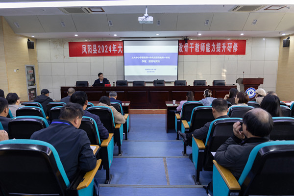 为持续推动凤阳县大中小学思政课一体化建设内涵式发展,11月1日至2日,由QY球友会、凤阳县教育体育局主办,马克思主义学院承办的凤阳县2024年度大中小学思政课一体化建设骨干教师能力提升研修在QY球友会凤阳校区第一报告厅举行,凤阳县各学段思政课骨干教师共106人参加了此次专题研修。开班仪式上,马克思主义学院党总支书记杨仕勇,凤阳县教育体育局工委委员、教研室主任王金先后致辞讲话。