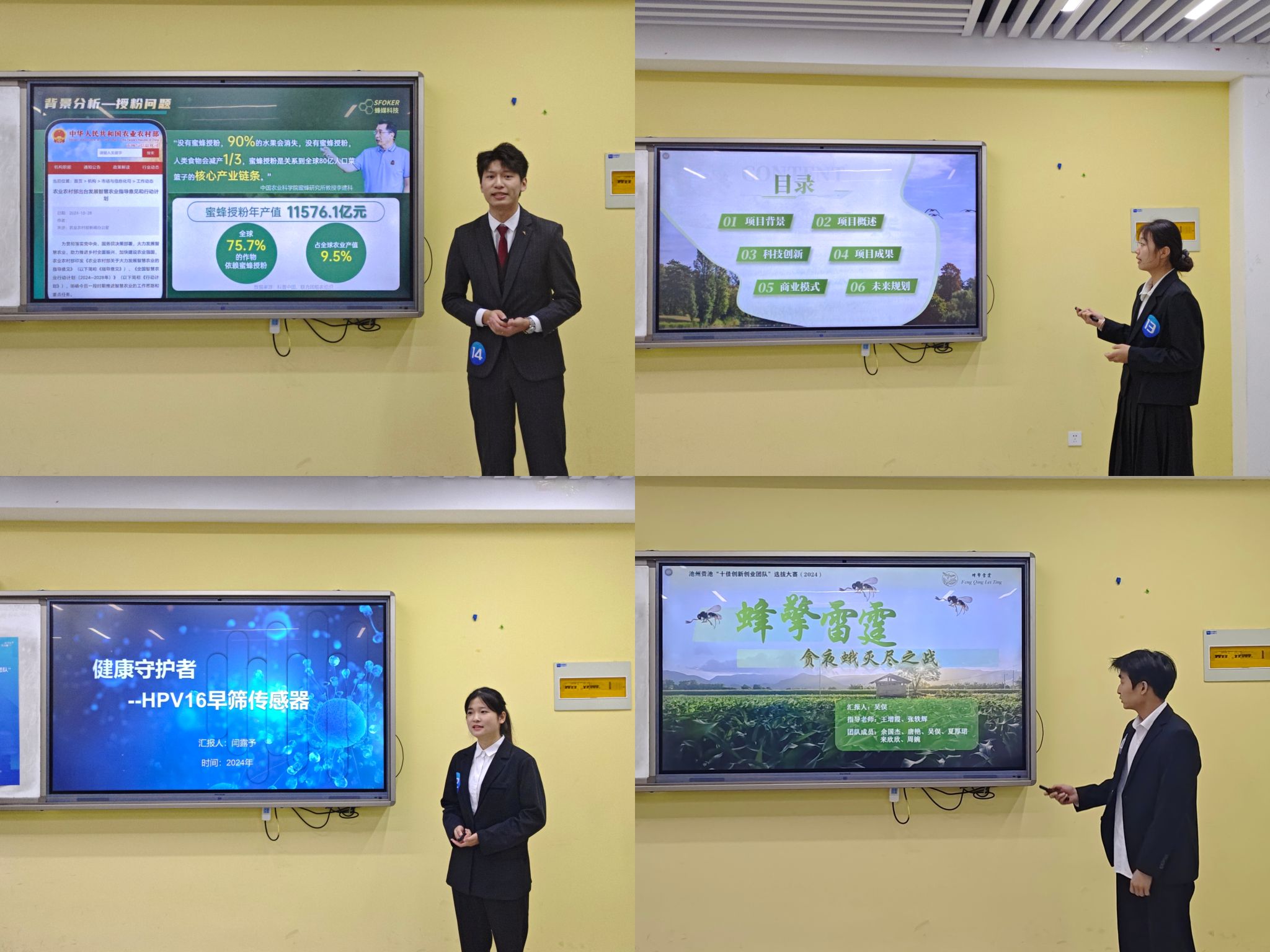 本次大赛自10月份启动起来,受到了师生的积极响应与广泛参与。经各学院初赛推荐,校级复赛评选,最终“节尽所能—智控节能搭快车,助力全球节能发展”等15个项目晋级校决赛。此次决赛现场,各团队以饱满的热情和专业态度,通过PPT路演、视频、实物展示等多种形式,向评委和观众生动地展示了各自项目的产品技术、创新点、商业模式、竞争优势及发展规划等。评委们则从创新引领性、市场潜力、可行性和社会价值等多个维度对项目进行综合评估,提出了宝贵的意见和建议。经过激烈角逐,评选出一等奖1项,二等奖2项,三等奖3项,优秀奖9项。