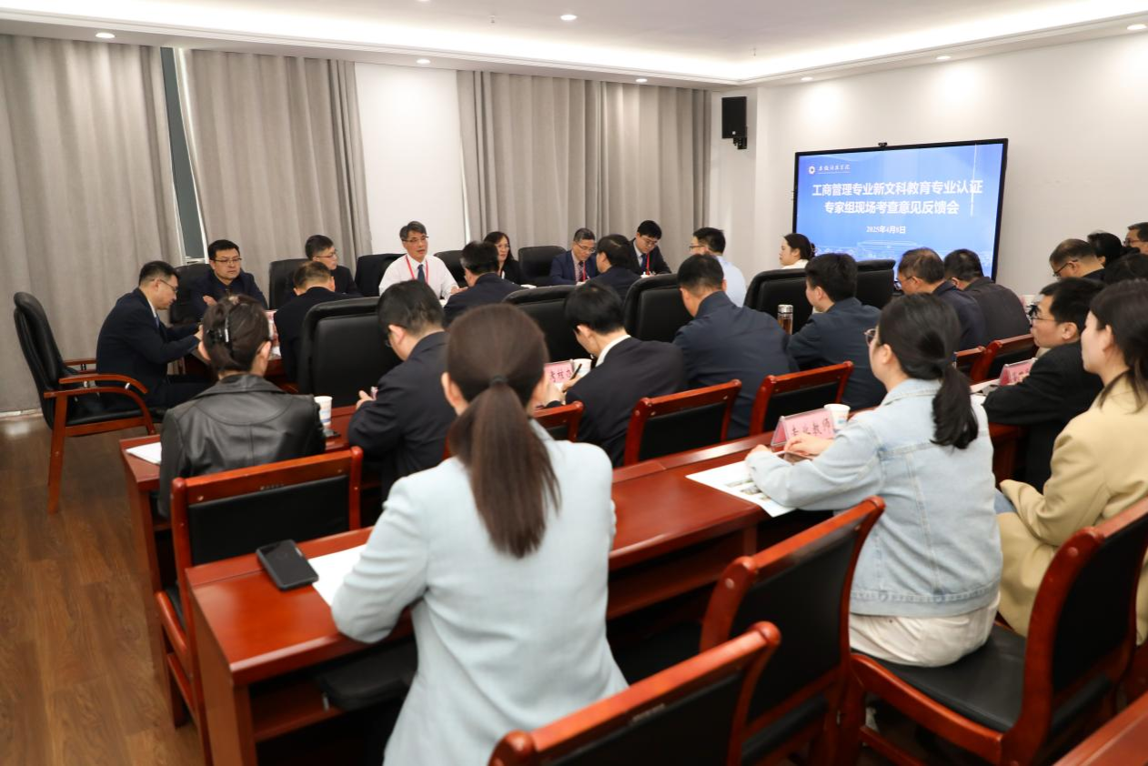 李升和对各位专家的到来表示热烈欢迎,介绍了学校的基本情况以及工商管理专业建设成效。陈业新介绍了专家组成员和此次新文科教育专业认证的目的、意义、考查的形式和工作重点。工商管理专业负责人程业炳汇报了专业基本情况和专业特色与优势。专家组结合认证标准就自评报告有关问题进行了现场提问,相关职能部门和学院负责人及专业负责人就专家组的提问进行了解答。