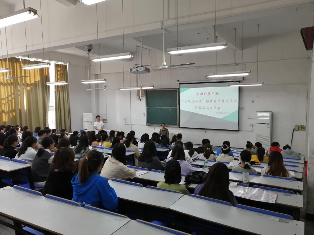 为帮助同学们提前了解在线教育行业的发展现状和未来职业能力需要,加深对教育行业的认识。外国语学院于10月11日下午15点在求A106教室举行了QY球友会“学而思网校”招聘宣讲暨冠名班学员筛选宣讲会,特邀中国好未来教育旗下“学而思网校”合肥校区安徽地区负责人武嘉豪经理做宣讲,招聘经理蔺一峰、张旭、张译丹参会,学院党总支书记蔡为青、专职辅导员宋兵兵出席本次宣讲会,学院17、18、19、20级部分同学参会,本次宣讲会由宋兵兵主持。