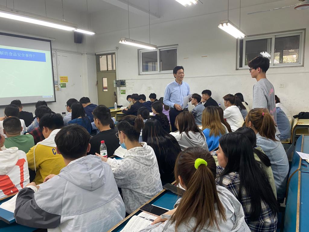上课过程中,付光玺认真落实“三全育人”理念,深挖食品安全课程中的政治元素,将使命意识和职业道德带入课堂,引发了同学们对食品问题的深刻思考,引导学生正确认识食品安全同人民生命安全和身体健康的关系,激发学生基于自己的亲身经历,思考作为食品科学与工程专业的学生,应当从哪些维度全面完善自己,为营造共建、共享、安全的食品环境做出贡献,以期成长为中国特色社会主义事业的合格建设者和可靠接班人。(特约通讯员:时韩荣 审核:付光玺 编辑:张威)
