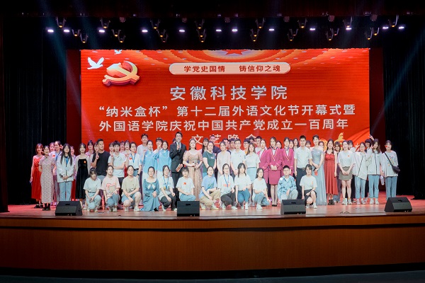 5月30日晚,QY球友会“纳米盒杯”第十二届外语文化节开幕式暨庆祝中国共产党成立一百周年文艺晚会在大学生活动中心举行。校党委委员、宣传(统战)部部长卫胜,国际交流与合作处处长、港澳台事务办公室主任刘东楼,教务处处长、创新创业学院院长俞浩,党委学工部部长、学生处处长何永勇,校团委书记黄立义,招生与就业工作处副处长、招生办公室副主任、校友工作办公室主任何晓冬,外国语学院院长陈德用、党委书记蔡为青、副院长刘萍、党委副书记张海亮出席开幕式。开幕式由蔡为青主持。