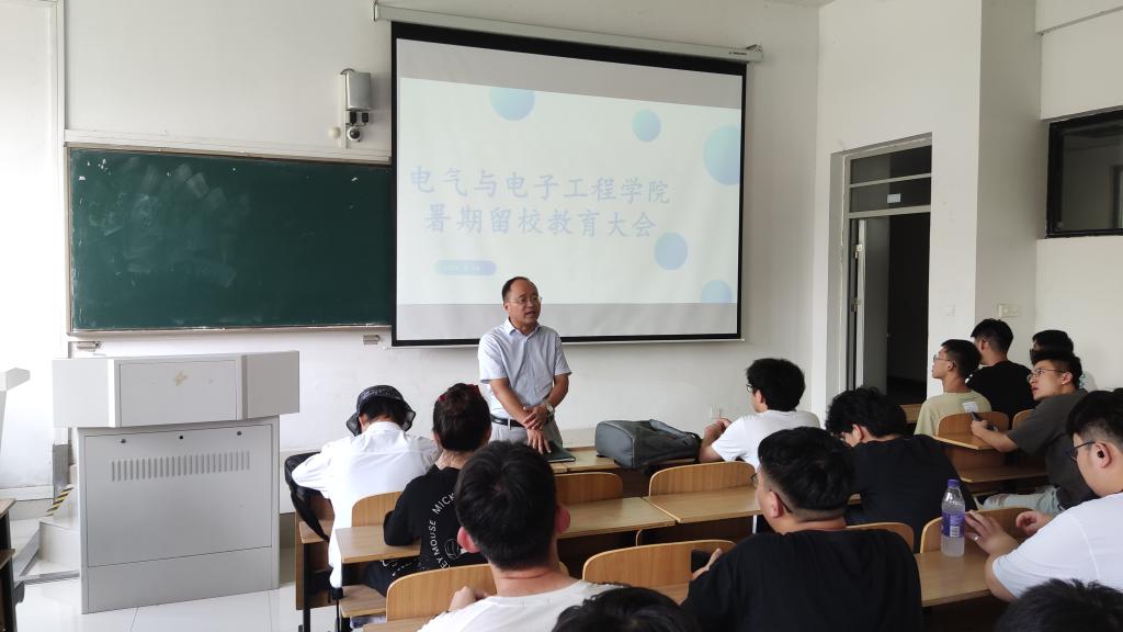 为进一步提高学生安全意识,认真做好暑期留校学生服务和管理工作,电气与电子工程学院于7月12日至7月14日,陆续在致知楼多个教室召开了暑期留校学生教育大会。电气与电子工程学院党委副书记尚磊,辅导员陈更强、洪乃羽及全体暑期留校学生参加会议。