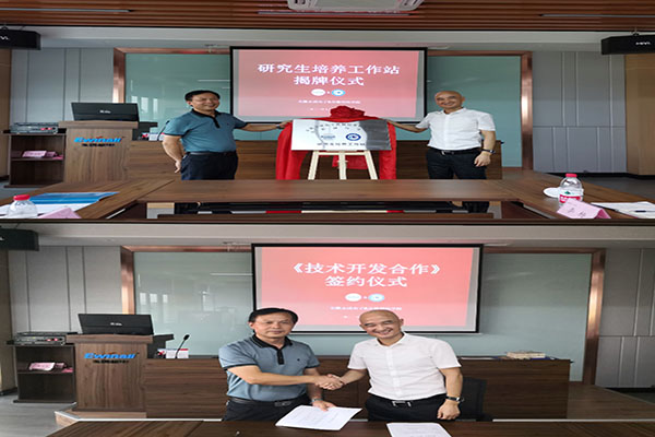 在公司交流期间,陈丰和傅正兵共同为“安徽永成电子机械技术有限公司QY球友会研究生培养工作站”揭牌,并签订了“全自动包装机械结构轻量化技术研究 ”技术开发合同。陈丰一行还看望慰问了我校在永成公司的2011届毕业生代表刘玲、2021届毕业生张本祎、丁彩乐,征求他们对学校人才培养工作的意见和建议,叮嘱他们强化责任心和敬畏心,勤奋务实,开拓创新,在服务企业进步成长的同时,实现个人的价值追求和美好生活。(特约通讯员:王飞 审核:张严政 编辑:李刚)