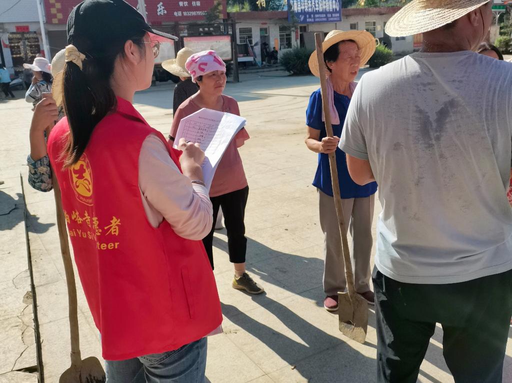此次受灾范围广,灾后重建工作无比艰难,村干部整日忙碌在外,所有的后勤工作就交给前来支援的志愿者。何依自从穿上了“红马甲”,整日在烈日炎炎之下忙碌着。发放物资、帮忙打饭、打扫卫生、工时登记,这些工作已成为她的日常。