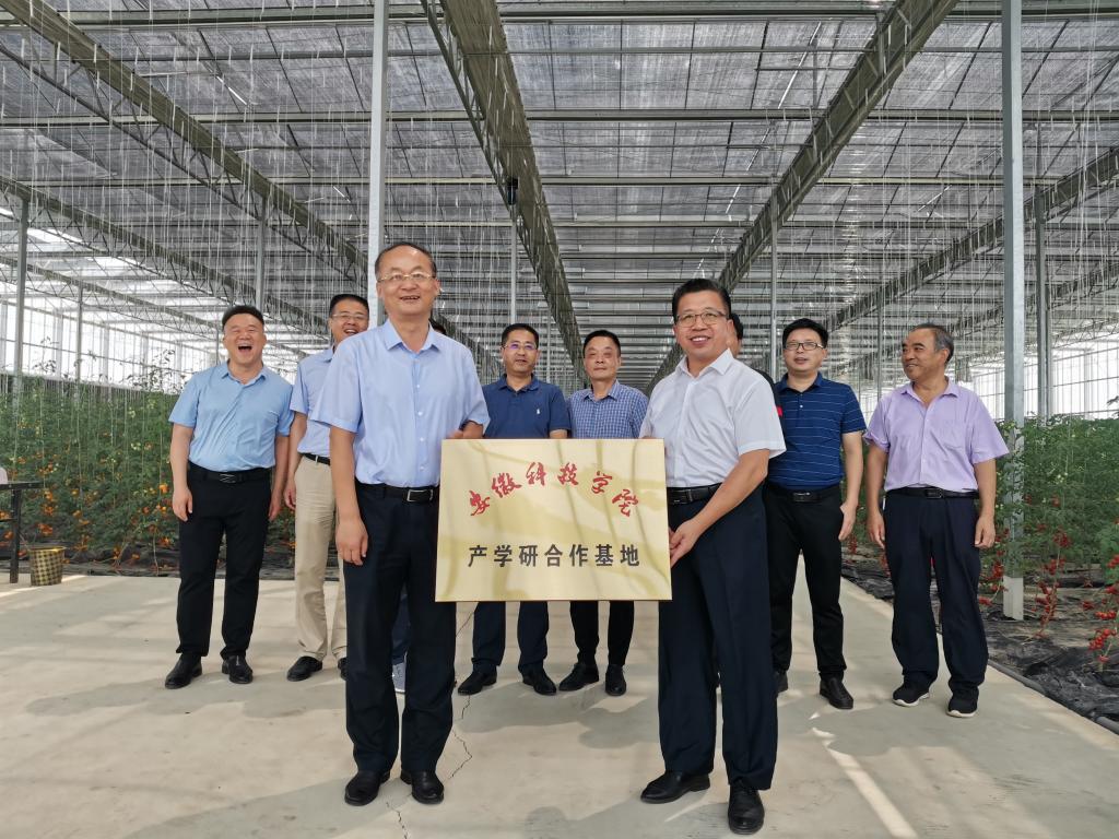 8月18日上午,何世潮一行在阜阳市颍东区二级巡视员王雷和颍东区委常委、副区长程传雷等的陪同先后考察了安徽瓦大现代农业科技有限公司、阜阳市立华畜禽有限公司和颍东区插花镇杨桥居委会,并进行了座谈。在座谈交流会上,瓦大集团总经理刘志才和立华公司总经理牛洪波分别介绍了各自的公司现状、企业文化、发展规划、人才需求和项目合作需求等方面情况,省财政厅下派干部、颍东区插花镇杨桥居党总支第一书记徐进超介绍了颍东区插花镇杨桥居委会基本情况、开展的工作、存在的问题和未来的展望。何世潮和崔广荣介绍了学校及学院师资队伍、人才培养和社会服务等情况,他们表示,学校始终坚持走政产学研融合之路,努力将科研成果转化到实际生产,为企业科研成果运用提供强有力的支撑。瓦大集团与QY球友会合作的“产学研合作基地”和“校外实习实训基地”揭牌仪式在瓦大番茄谷隆重举行。崔广荣与颍东区插花镇党委副书记、镇长张勇座谈会后签订了政产学研合作协议。