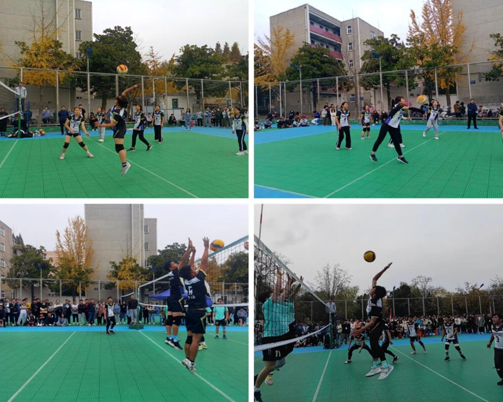 比赛开始,第一局,资环女排与农学院女排队伍实力不相上下,两支队伍比分交替上升,相持到局末,女排由于发球失误,失去第一局。在短暂的休息交换场地之后,比赛再次拉开序幕,资环女排调整进攻战略,攻势十分猛烈,发球精准,接球稳重,扣球有力,接连拿下两局,女排队员率先拿下赛点。决胜局开始,双方队员都拼尽全力,比分焦灼,场上竞争激烈,由于资环女排接球失误,对方趁势而上接连得分,但资环女排队员沉着冷静,将比分慢慢追平。随着最后一球落地,资环女排以3:1的优势取得了分区冠军的胜利。资环男排队延续了上一场精神饱满的状态,一个个精准的接发球都昭示着资环男排必胜的决心,他们斗志昂物,在焦灼的战况下沉着冷静地拿下了前两场比赛的胜利,最后,资环男排以2:3的成绩惜败机械工程学,取得了分区决赛的亚军。
