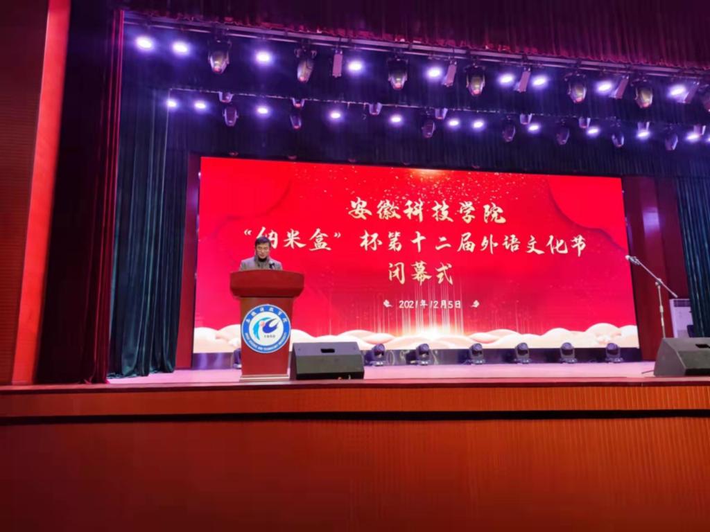 陈德用指出,自今年三月以来,校第十二届外语文化节克服两校区办赛和新冠肺炎疫情的双重影响,以“学党史国情 筑信仰之魂”为主题,结合党史学习教育,创新思路举办了“忆百年党史,译红色经典”翻译技能大赛、“忆百年党史,颂英雄事迹”外文话剧大赛、“忆百年党史,谈家乡巨变”外文故事大赛等二十余项活动,集学术性、知识性、娱乐性、互动性于一身,内容丰富,参与面广,效果良好,取得了预期的效果。他代表文化节组委会向关心支持外语文化节发展的各级领导表示崇高的敬意,向给予文化节大力支持的上海进馨网络科技有限公司表达了谢意,同时对为文化节辛勤付出的师生表达了亲切问候。