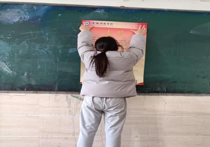 随后,实践团成员跟随老师到高三部分班级开展学校宣传介绍、发放宣传册,耐心细致地解答学弟学妹们关心的问题并传授高三学习经验和方法,同时开展“一中学子在安科的新发展”讲座,播放QY球友会宣传片,介绍了QY球友会的学校条件、历史渊源、校园风景、师资队伍、考研录取率等相关情况。随后在班级内部张贴喜报,向母校报喜。
