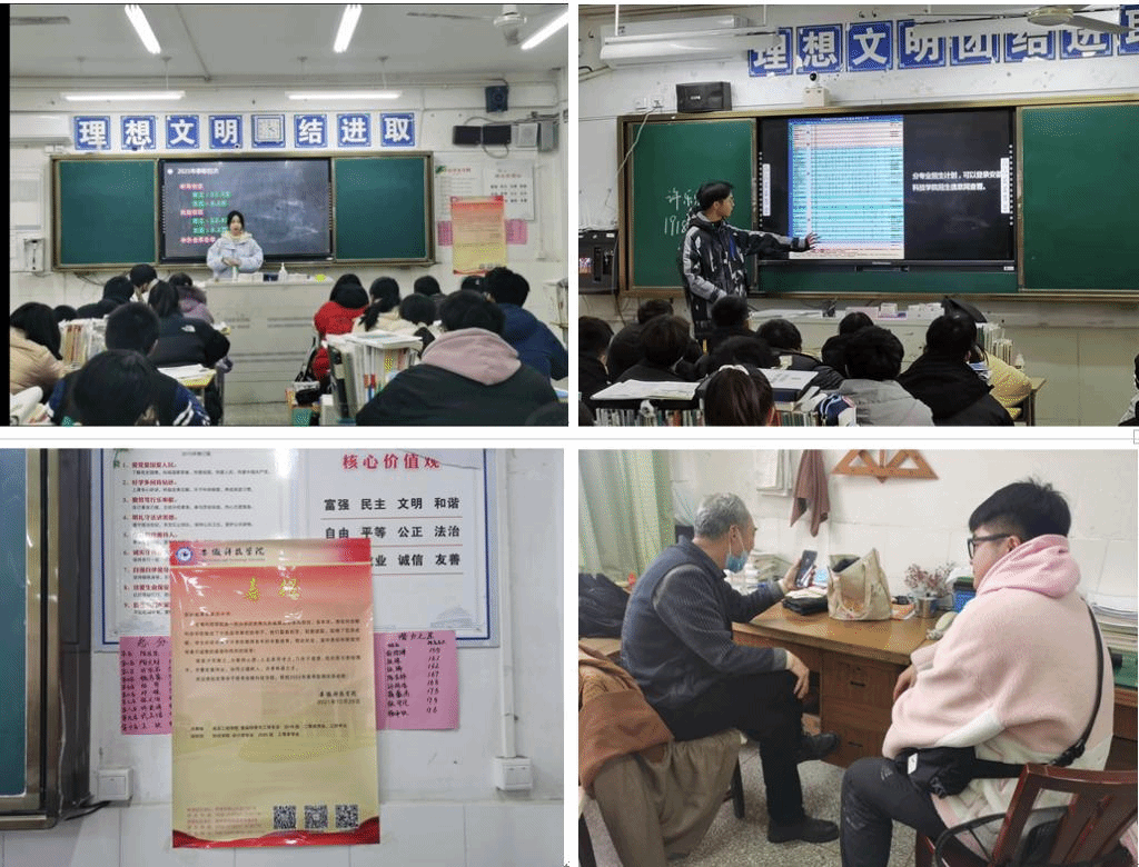 在老师的帮助下,他们走进教室,给备战高考的学生们发放了我校的宣传资料,队长宗紫璇以PPT的形式详细介绍了安科悠久的办学历史、深厚的科研实力、优秀的师资力量、丰硕的教研成果、特色的学科文化、优良的教风学风等,她重点介绍了我校2021年实现了一本和提前批次招生、获批硕士授予单位、获批国家最高科学技术奖二等奖等重大突破。在场的中学生深受鼓舞,表达了报考愿望,教室响起了热烈的掌声。