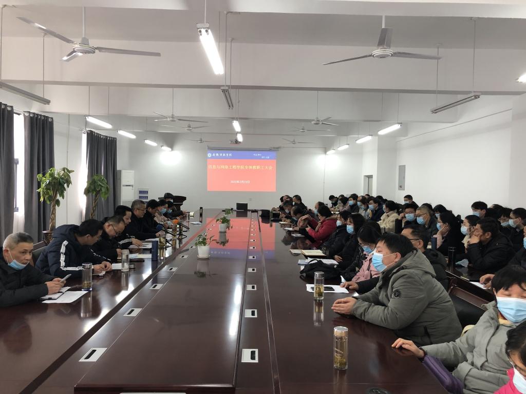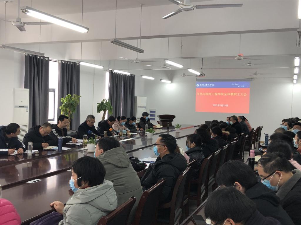 2月23日下午,信息与网络工程学院在尚行楼B418会议室召开期初全体教职工会议。学院党委书记王振其,正处级组织员周向群,党委副书记韦乃学,副院长何恩节,副院长曹浩及全体教职工参加会议,会议由学院院长余宏杰主持。