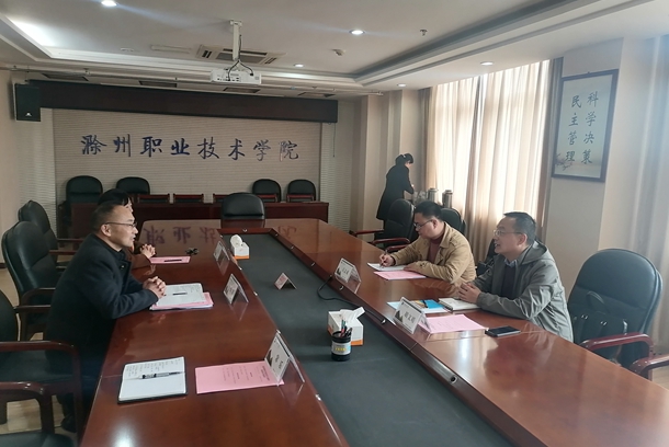 张军对我校调研组的到访表示欢迎,他介绍了滁州职业技术学院征兵工作“两站”服务与学生事务大厅的建设及运行情况以及征兵工作方面的特色经验做法;薛天飞介绍了与QY球友会联合培养本科生的教育管理有关情况。