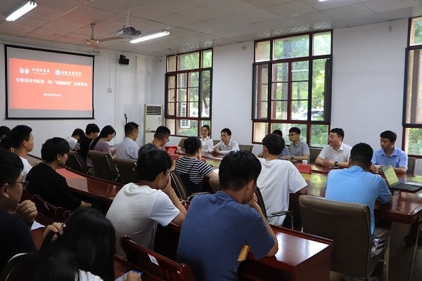 6月10日,动物科学学院与双胞胎集团合作的首期“双胞胎班”开班仪式在学院会议室举行。双胞胎集团蚌埠公司总经理邱金华、华北战区人资部长张元肖、华北战区校招负责人刘金柏、招聘经理刘金伟、招聘专员张长祥、刘平,动物科学学院党委副书记、纪委书记汤帅、辅导员胡文丽、范雨梦出席,“双胞胎班”全体学生参加此次活动,开班仪式由学院党政办公室主任、团委书记李焱主持。