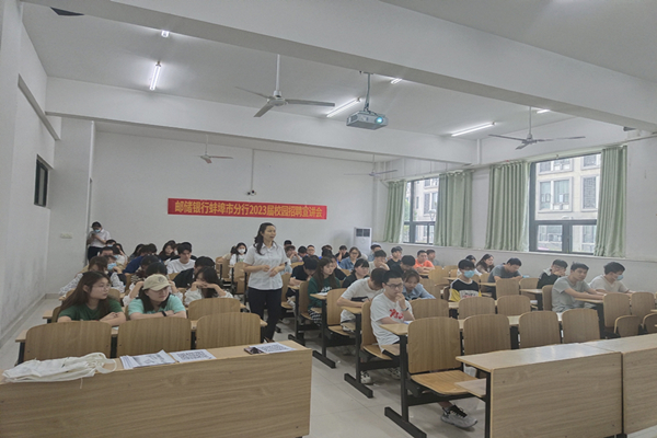 为更好的拓宽就业渠道,优化就业服务,推进学院2023届毕业生更加充分更高质量就业,9月28日,财经学院邀请中国邮政储蓄银行蚌埠市分行在致知楼A106举办秋季校园专场招聘宣讲会。邮储银行蚌埠市分行人力资源部总经理胡清华出席会议,财经学院2023届毕业生及龙湖校区其他对口专业毕业生参加宣讲会。