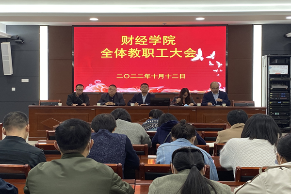10月12日下午,财经学院在龙湖校区西附楼111会议室召开全体教职工会议,学院党政领导及全体教职工参加会议,会议由学院党委副书记、纪委书记耿广汉主持。