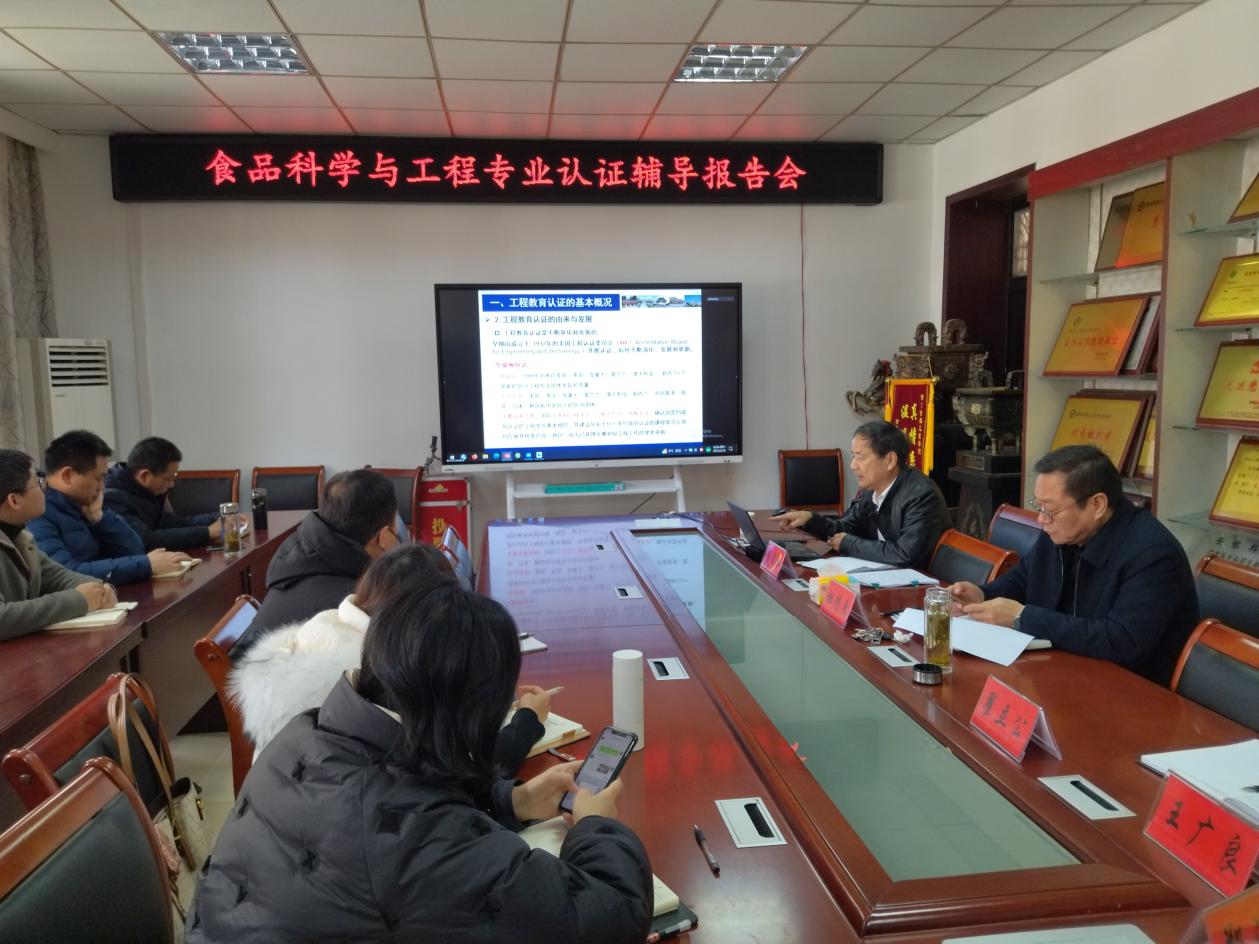 为进一步推动我院工程教育专业认证工作,不断提高专业建设水平,提高人才培养质量,增强办学核心竞争力,3月18日上午,食品工程学院特邀江南大学夏文水教授在学院办公室进行工程教育专业认证的专题辅导讲座。食品工程学院院长杜传来主持,党委副书记王广良和副院长郑海波出席会议,全院教师到场聆听学习。
