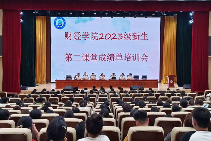 为进一步落实第二课堂成绩单制度,培养具有创新精神和实践能力的大学生,9月8日晚,财经学院在龙湖校区东辅楼二楼报告厅开展“第二课堂成绩单”文件精神解读会议。会议由学院团委书记薛枫主讲。2023级全体新生参加了此次培训。