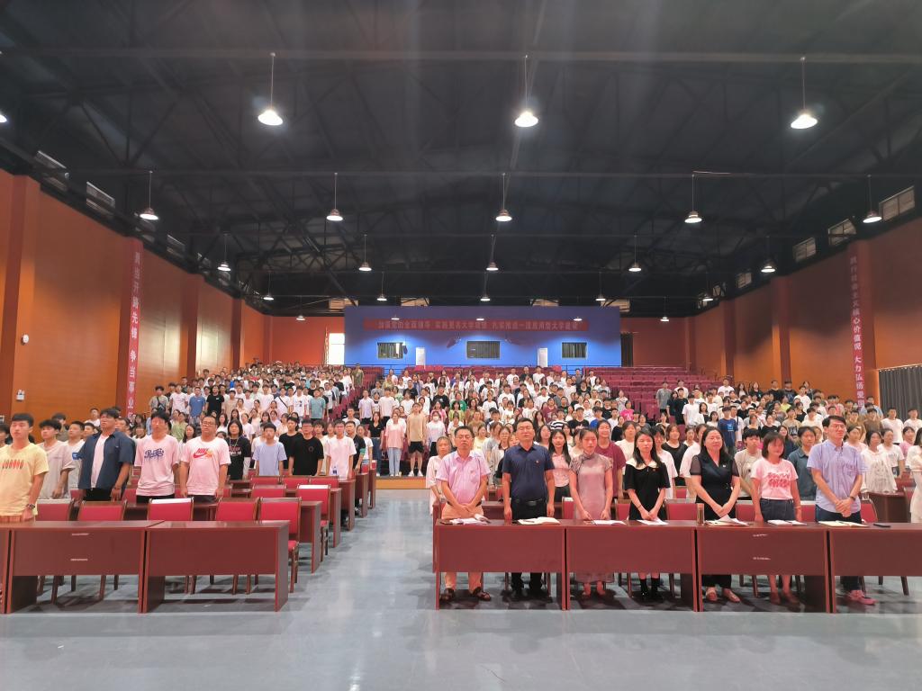 为帮助2023级新生尽快适应大学学习生活,早立凌云志、不负好年华,根据学院新生入学教育工作安排,在入学报到的第二天(9月6日)上午,学院在大学生活动中心召开入学教育大会。学院党政领导、工会主席、教研室主任、专职辅导员及全体新生参加会议。大会由学院党委副书记(主持工作)张传德主持。