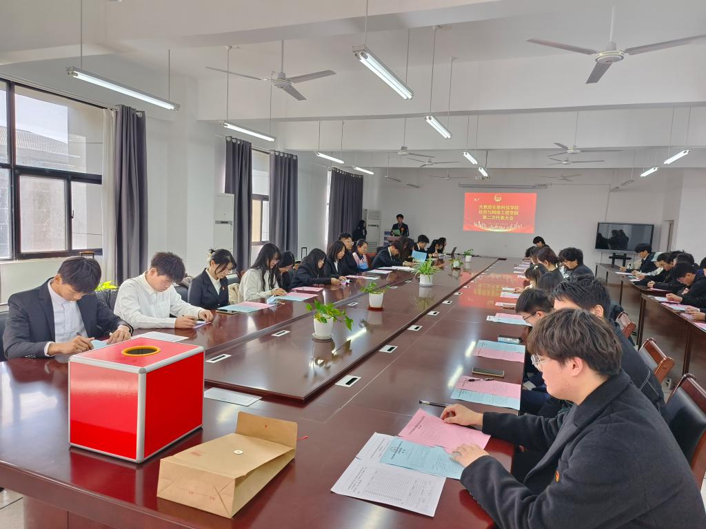 在圆满完成各项任务后,大会在激昂的团歌中顺利闭幕。随后,信息与网络工程学院召开团委二届一次会议选举产生团委书记、副书记。(特约通讯员:陈凯 摄影:刘洋 王光曾 审核:韦乃学 编辑:李锦)