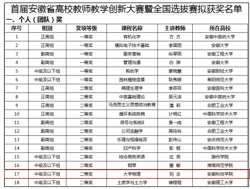 我校教师在安徽省首届高校教师教学创新大赛中取得优异成绩