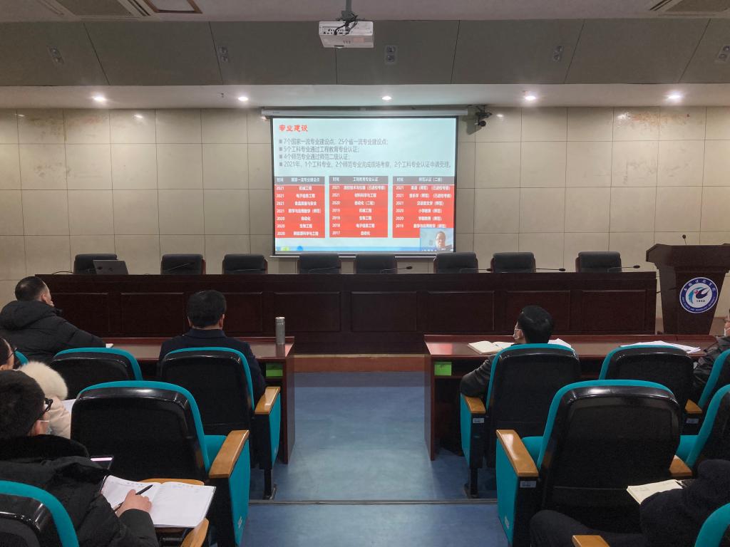 为做好新一轮审核评估迎评促建工作,2月18日上午,我校设视频分会场,组织参加麦可思主办的“常熟理工学院新一轮审核评估评建实践”专题讲座,讲座由常熟理工学院教学质量管理处处长黄文祥主讲。党委委员、副校长黄友锐,教务处处长赵伟峰,督导考核办公室主任程斌,各教学院(部)分管教学副院长、教学秘书,督导考核办公室及教务处相关人员参加了会议。