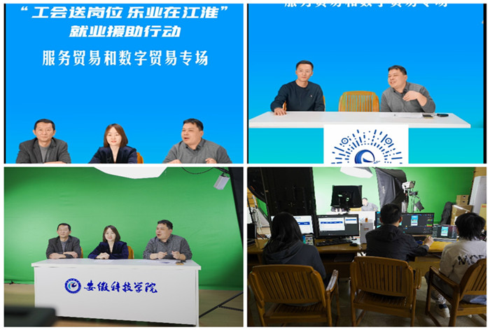 322日下午,“工会送岗位 乐业在江淮就业援助行动直播招聘会——服务贸易和数字贸易专场活动在我校凤阳校区直播间举办