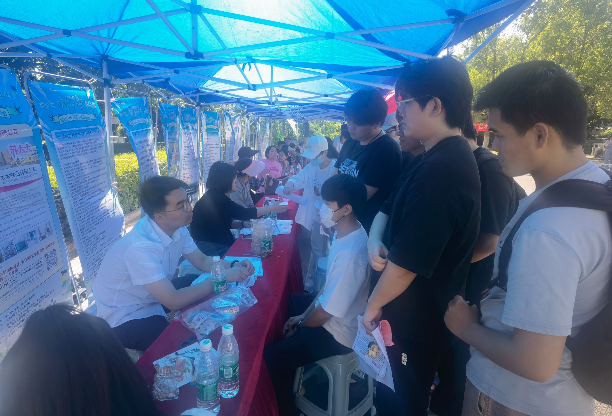 5月15日下午,相山区委常委、区政府副区长余乾,相山区人社局党组书记、局长王钰率队组织淮北市企业在凤阳校区五四广场举办专场招聘会。