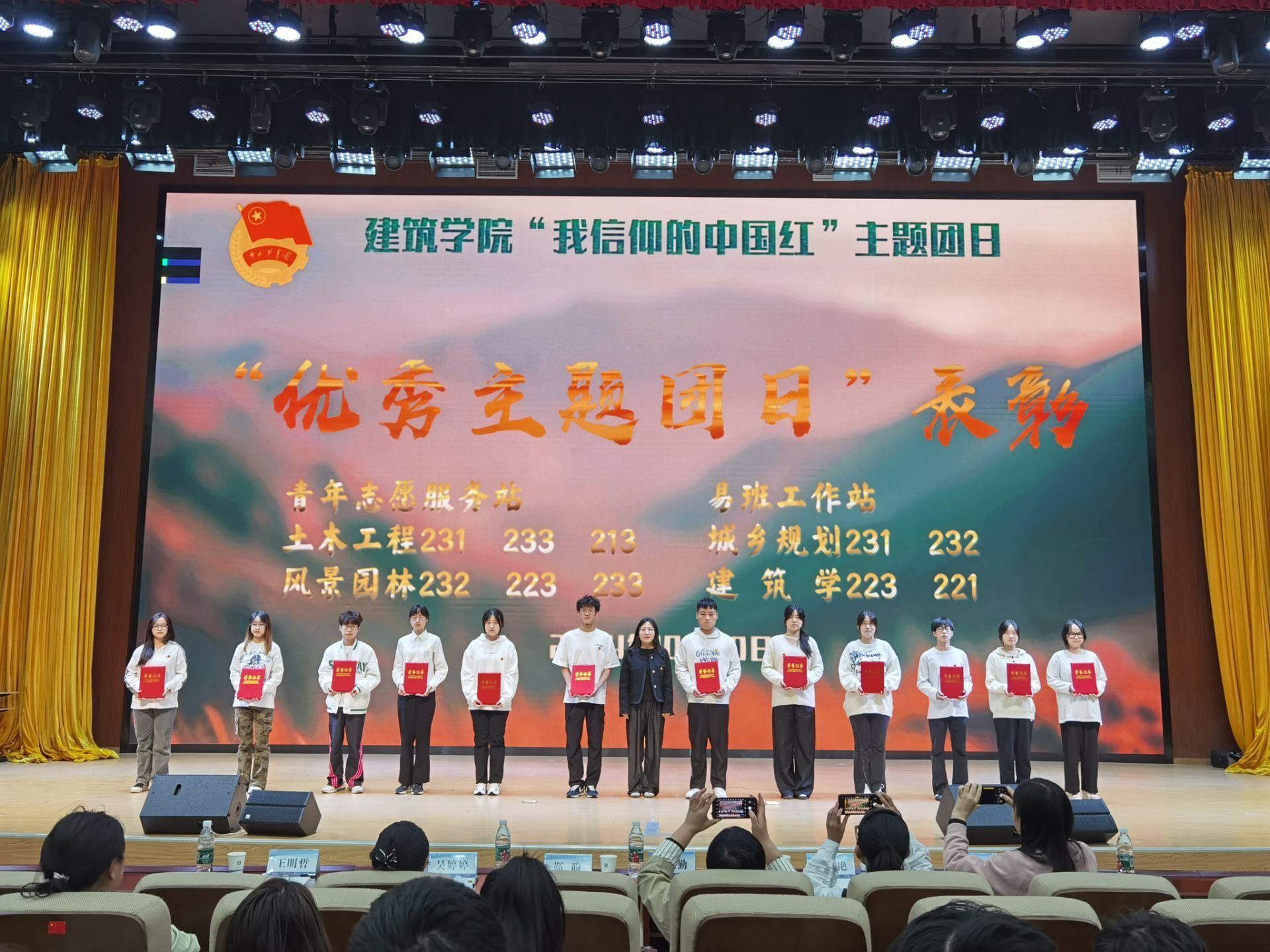 建筑学院党委副书记谢宜勤在总结时强调,此次团日活动带领大家共同探寻了“中国红”背后的深厚意义,感受了信仰带给大家的力量。“我信仰的中国红”正是那些怀揣坚定信仰、勇于担当的时代新人的真实写照。在建筑学院,先进团支部与优秀学子们以实际行动和不懈努力,为全体青年学子树立了光辉榜样。她指出,每一个挑战都是一次成长,每一次努力都将开启新的赛道,希望同学们有目标有追求、有努力有奋斗、有创新有实践、有责任有担当,实现德智体美劳全面发展,早日成长为能够担当起祖国和人民期望的栋梁之材。