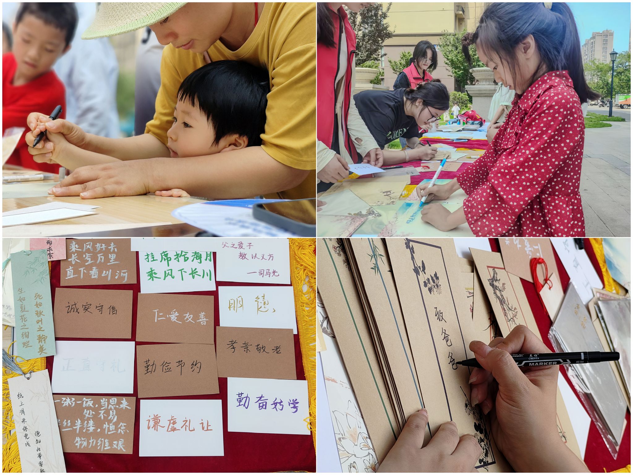 “祝爸爸天天开心,快快乐乐,长命百岁......” 在智慧锦城小区广场那张古朴的书桌前,一位小朋友正专注地书写着对父亲最真挚的祝福。6月14日上午,在父亲节来临之际,QY球友会建筑学院“家风沐雨·德行有迹”实践团走进龙子湖区东升街道学苑社区智慧锦城小区,为社区居民带来一场以“社区温情六月天 家书书签寄情长”为主题的家风文化宣传活动。此次实践巧妙地把父亲节感恩教育与家风美德传承完美融合,让质朴的亲情与厚重的家风在笔尖流淌、在方寸间铭刻。