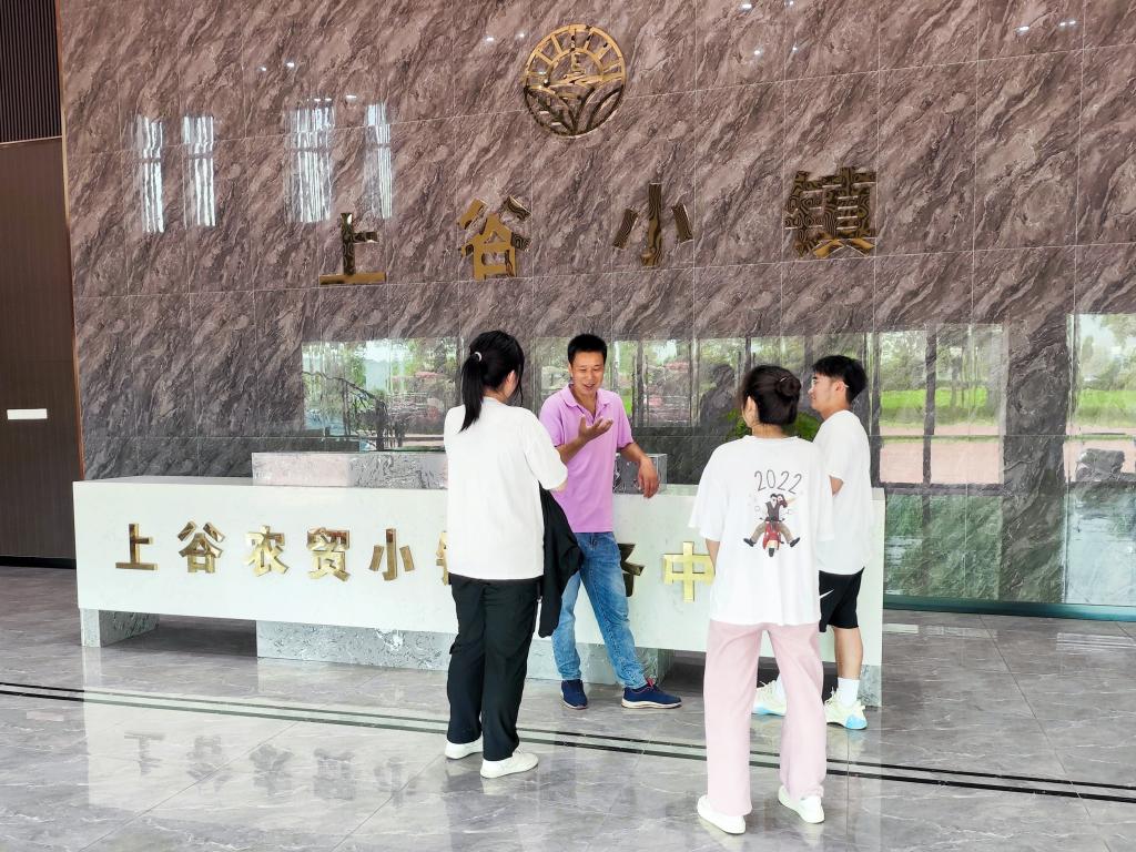 “各位同学们,我将为大家介绍一下上谷农贸特色小镇的发展历程。”接待处的工作人员热情地对实践团的成员们说道。通过详细介绍,成员们了解到,上谷农贸小镇创立于2018年,成为了怀远县乡村振兴战略中备受关注的项目之一。在国家特色小镇政策的支持下,该小镇引入了现代化的农贸市场模式,促进了农产品的销售与加工,成功实现了乡村经济的转型升级。此外,上谷农贸小镇还在规划布局、培育特色产业以及打造区域特色等方面取得了显著成就。