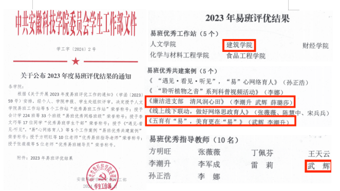 近日,教育部易班发展中心公布了2024年度全国易班共建优秀名单,建筑学院专职辅导员武辉获评2024年度全国“优秀易班辅导员”,安徽省仅1位辅导员获得此荣誉。