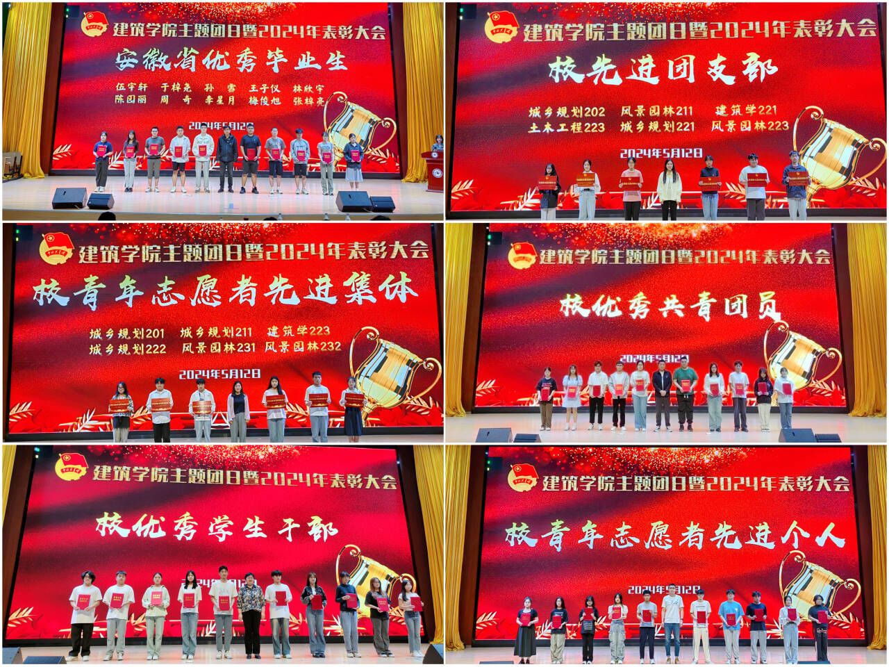 活动现场,建筑学院团委书记沈德艳带领2023年新发展团员进行入团宣誓;老师们为学院2024年安徽省优秀毕业生、校先进团支部、校青年志愿者先进集体、校优秀共青团员、校优秀学生干部、校青年志愿者先进个人颁发了荣誉证书。