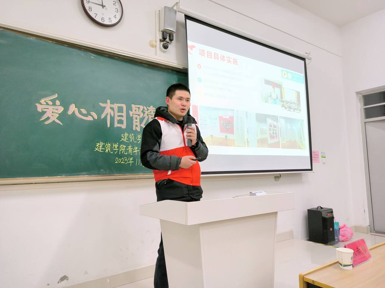 在第38个“国际志愿者日”来临前夕,11月29日晚,建筑学院组织开展了“向上向善好青年”青春故事分享会。安徽省优秀共产党员、蚌埠市第一人民医院团委副书记徐杨,“蚌埠好人”任启阳应邀主讲,徐杨学雷锋志愿者服务队成员郁希雅,建筑学院青年志愿服务站成员、青马学员、党员近100人参加。分享会由建筑学院团委书记沈德艳主持。