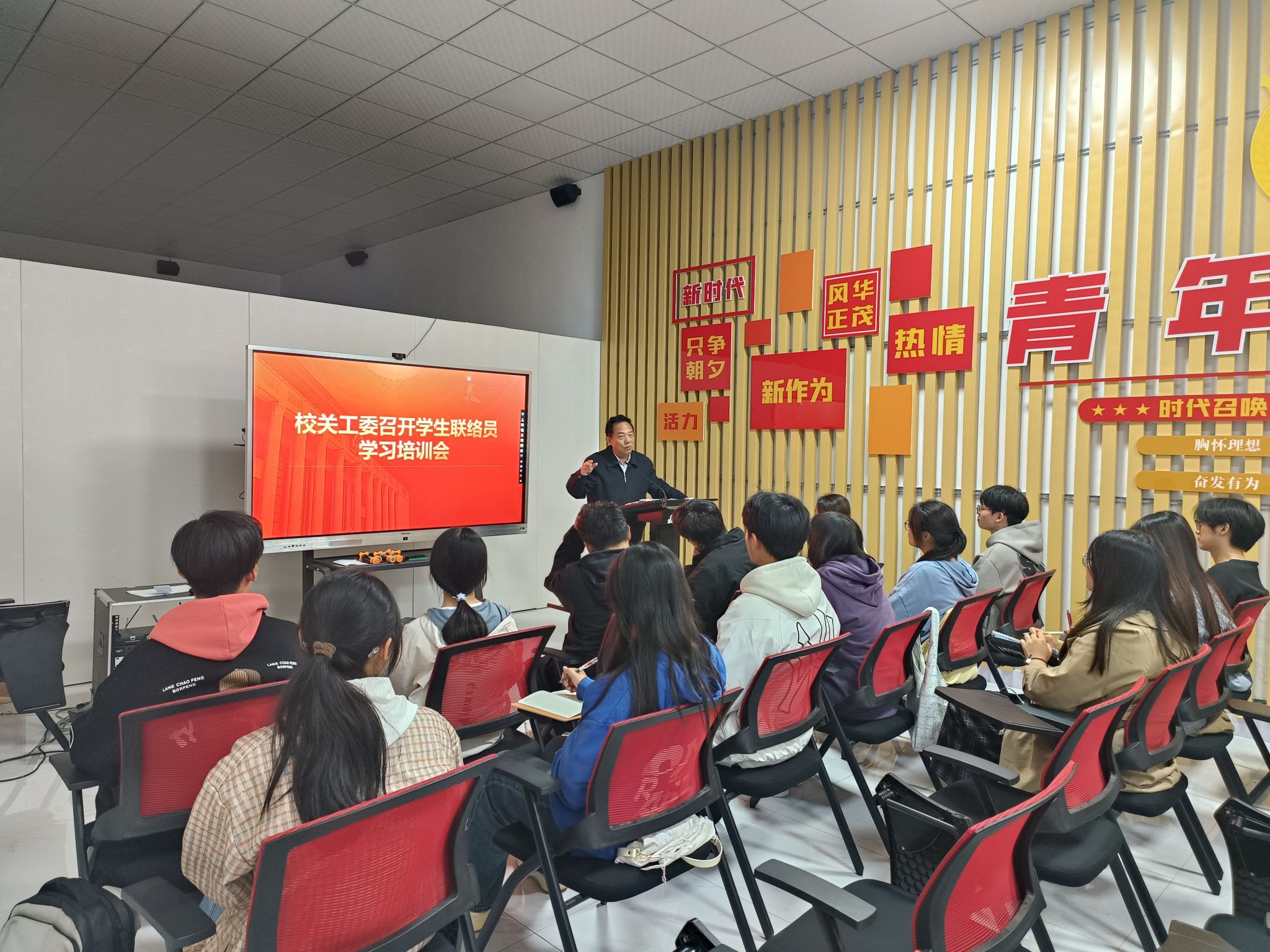 为认真贯彻省教育厅关工委文件精神,根据工作安排,11月11日晚,校关工委在校团委会议室召开了学生联络员培训会。凤阳校区各学院2023、2024级关工委学生联络员参加了会议,会议由校关工委副主任杨秀军主持主讲。