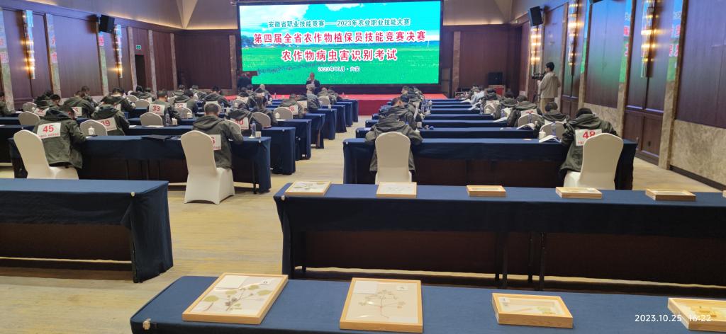大赛分理论考试、农作物病虫害识别、农药配制和植保飞防四场比赛。全省16个市的广大农作物植保农业农村技能人才和农业企事业单位一线职工选拔出来的48名选手参加本次决赛。裁判委员会由来自安徽农业大学、安徽省农业科学院植物保护与农产品质量安全研究所和我校共10位专家担任裁判长和主裁判。