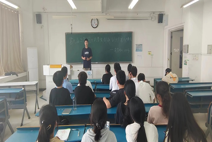 本次大赛以“我敢闯,我会创”为主题,王广顺向同学们传达了学院会议精神和要求,鼓励同学们围绕制造业、农业、卫生、能源、环保、战略性新兴产业等领域,自由组队,积极参赛。团支部书记宋婷婷和学习委员王成俊分别对本次大赛的赛程、赛道和奖项进行了详细的讲解。