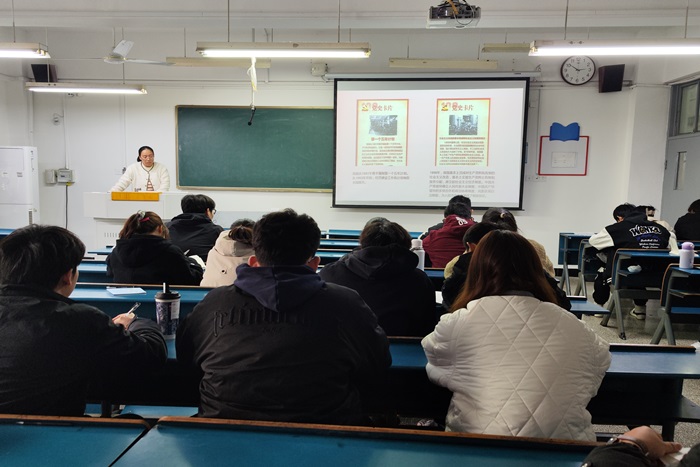 11月6日,农学院专职辅导员薛晶晶在求知楼B207为“青马工程”学员做了题为《中国共产党百年奋斗的光辉历程和历史经验》报告。从新民主主义革命时期“开天辟地”的红船起航、星星之火燃遍华夏,到社会主义革命和建设时期“改天换地”的艰苦奋斗,再到改革开放和社会主义现代化建设新时期“翻天覆地”的创新变革,直至中国特色社会主义新时代“惊天动地”成就,薛晶晶借助一幅幅波澜壮阔党史画卷,向同学们讲述了党带领人民砥砺奋进伟大历程。