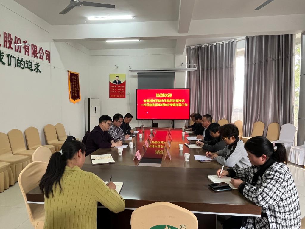 4月14日下午,何世潮一行走访了安徽华成种业有限公司,受到公司董事长刘良柏,副董事长、总经理王平信,常务副总经理郭然,副总经理闫启云、韩欢,财务总监郑杰,董事会秘书、人力资源部部长王晶晶等热情接待。何世潮等通报了双方合作共建的华成种子班人才培养的基本情况,刘良柏表达了公司对农科人才的渴望和大学生实习需求,双方就大学生实习实训安排细节进行了洽谈,举行了基地授牌仪式,并就公司用人需求进行了对接。仪式结束后,在刘良柏、王平信等的陪同下,何世潮一行参观了华成种业置办的现属世界一流的智能化种子生产加工流水线和贮藏烘干检验等设备。
