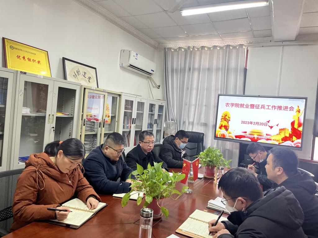 为持续推进毕业生就业和征兵工作,2月20日,农学院召开2023届毕业生就业暨征兵工作推进会。学院党政领导班子成员、毕业班辅导员和就业征兵联系人参加会议。会议由学院党委书记何世潮主持。