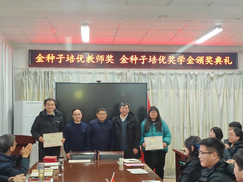 1月11日下午,“金种子培优基金”2023年度“金种子培优奖学金”“金种子培优教师奖”颁奖仪式在农学院会议室隆重举行。学校党委委员、副院长李升和,上海景领投资管理有限公司合伙人、基金发起者黄宪先生,二级教授、基金发起者农学院黄先忠老师,农学院党委书记何世潮,副书记张轶辉,副院长舒英杰和李文阳以及教师代表和学生代表出席颁奖仪式。根据《QY球友会农学院“金种子培优基金”申报细则》和申报人申请,经“金种子培优基金”评审委员会评审,李瑞宁、艾昊两位青年教师荣获金种子培优教师奖,孙张论、李婷、杜孟祥、杨德坤和王静婷五位农艺与种业专业研究生荣获金种子培优奖学金。颁奖仪式由农学院党委副书记、院长崔广荣主持。
