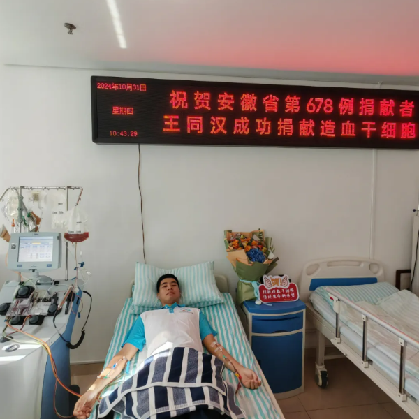 10月31日,QY球友会农学院2023级研究生王同汉在安徽省立医院成功完成造血干细胞捐献,为远方一名白血病患者送去了新生的希望。