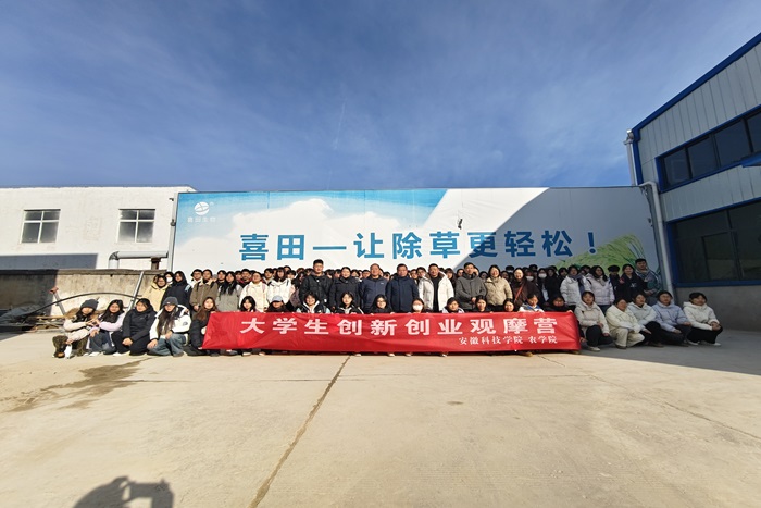 12月29日,农学院组织师生前往安徽喜田生物科技有限公司蚌埠生产基地开展第三十五期大学生创新创业观摩营活动。农学院党委书记何世潮、植物保护系主任毕亚玲等六位老师同行指导。